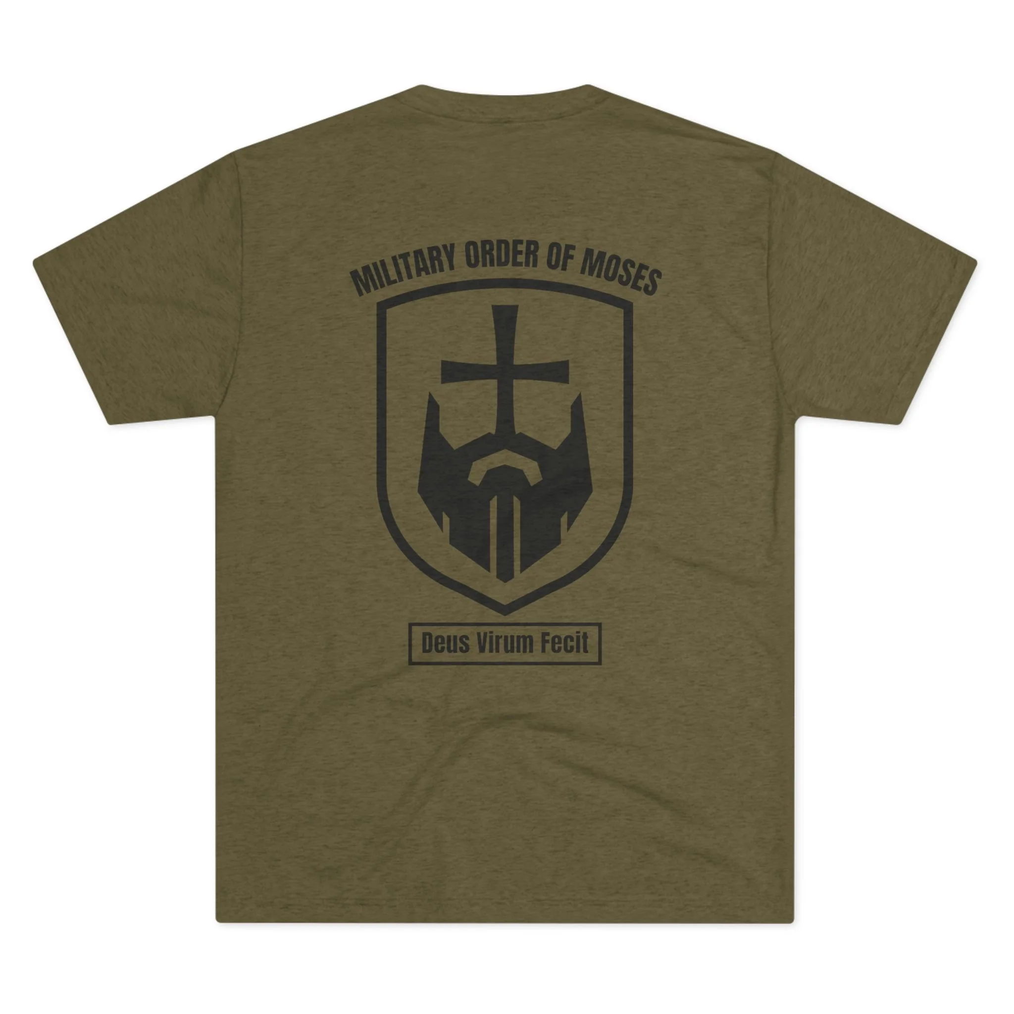 Soft, breathable, and durable, it’s perfect for training, travel, or reflection. The back features the Military Order of Moses insignia and motto Deus Virum Fecit — “God Made Man” — a bold reminder of the strength that comes from faith.