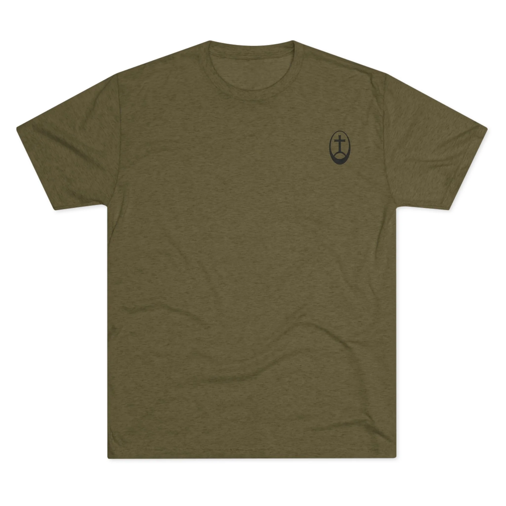 This unisex tri-blend crew tee combines rugged comfort with a clean, classic fit — built for men who live the discipline of warriors and the devotion of saints.